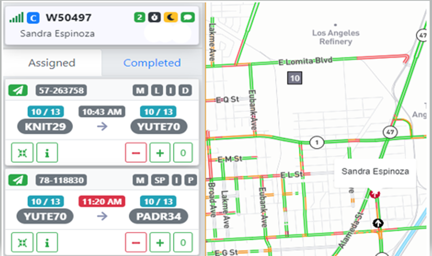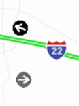 Black arrow: Represents an on-duty driver currently under dispatch (as below)