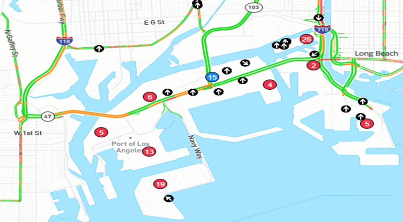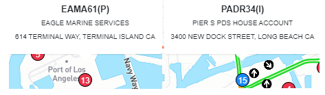 Red Circle: Port (or rail) Location (as below)