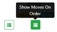 Left click on the “Show Moves On Order” action button to display all moves on the selected Pro. “Completed” moves will be shaded in light gray and “active” moves (current dispatch) will display in light green. The “Add Move” action button will be covered in another training module. (See example below)