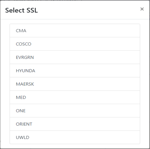 SSL: When this sort is selected, the below window will display listing all applicable SSL’s (Steamship Lines/container owners) that are included in the current Pool Mode filter.