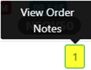 If the ”View Order Notes” box is shaded in Yellow with a number inside the box, this indicates there are order notes to view. Left click in the box to view the order notes onscreen. (As below)