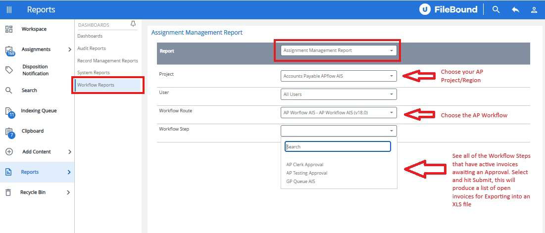 Examples: Document Volume by Type, Workflow Duration, Task Completion Rates.