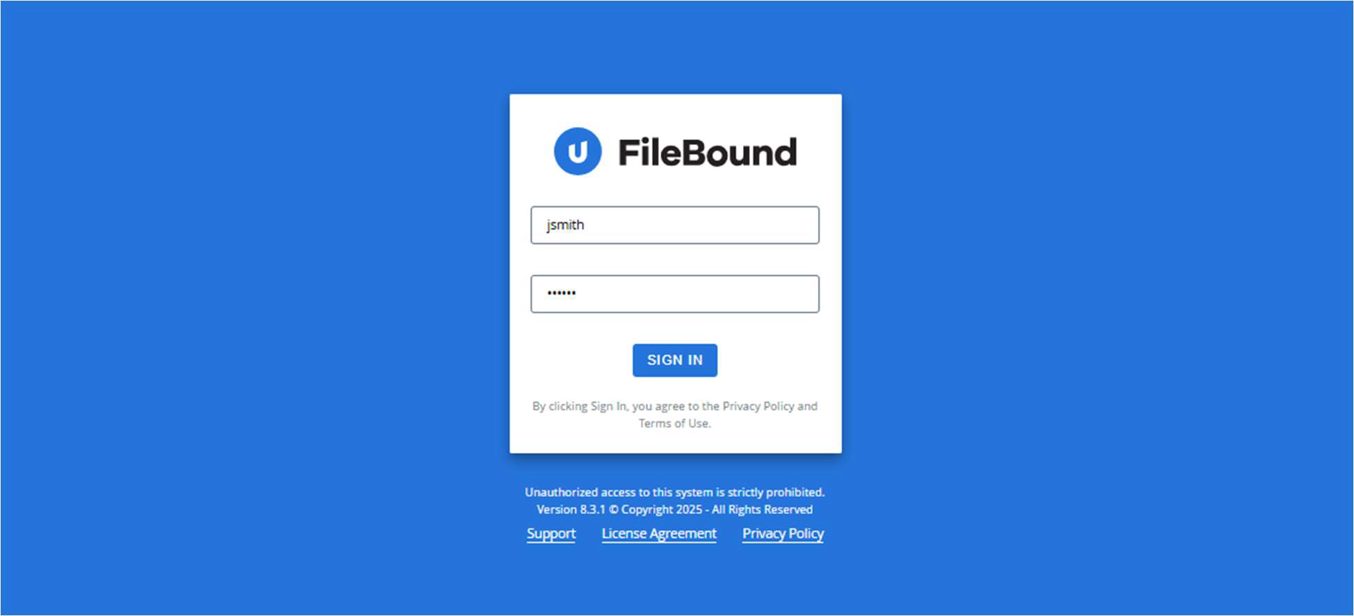 Other Requirements: Pop-ups enabled for FileBound site; cookies and JavaScript enabled.