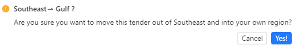 Left click on the blue “Yes!” button to execute the Load Tender reassignment. Otherwise, left click on the “Cancel” button. (As above)