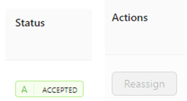 If the “Status” shows “Accepted” and “Reassign” is grayed out under the “Actions” column, the Load Tender cannot be moved to your Region. (As below)