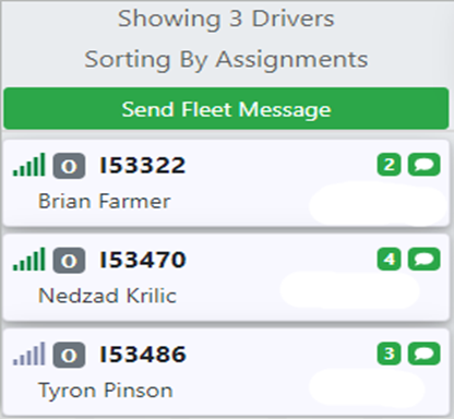 The drivers with assigned moves that the entered CSR userid is responsible for will display on the left-hand side of the screen. (Example below)