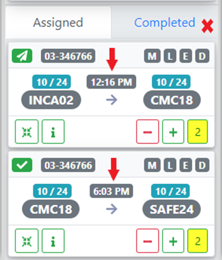 Left click on a driver’s “card” to select that driver. The assigned moves will be displayed with an eta for each move. Left click on the “Completed” tab to view any completed moves. (As below)