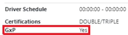 To confirm certification, left click on a Driver’s “card” to select then left click on the “card” to expand. Drivers with a “Yes” in the GxP field have completed the necessary endorsement requirements. (As below)