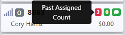 For On Duty Drivers, “Current Assigned Count” (GREEN) will start at 0 and continue in ascending order.