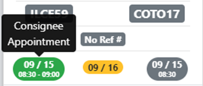 In the example above, the ETA to the consignee is 09:19 a.m. but the consignee appointment (below) is set for 08:30 – 09:00 a.m. The late ETA compared to the appointment time is what triggers the “Driver Late on Move” indicator.