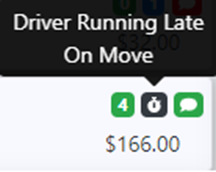 A black stopwatch symbol will display on the driver’s “card” indicating a potentially late event that should be reviewed. (As below)