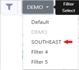 Left click on the “Filter Select” dropdown button to view all saved filters. Left click on the filter you wish to view and/or change.