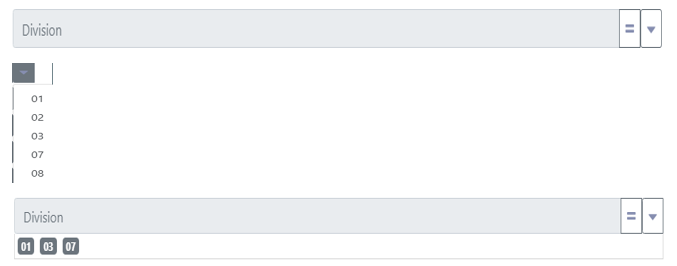 Any filter name that includes a dropdown arrow indicates there are multiple selections available. In the example below, multiple divisions can be selected by left clicking on the division # itself.