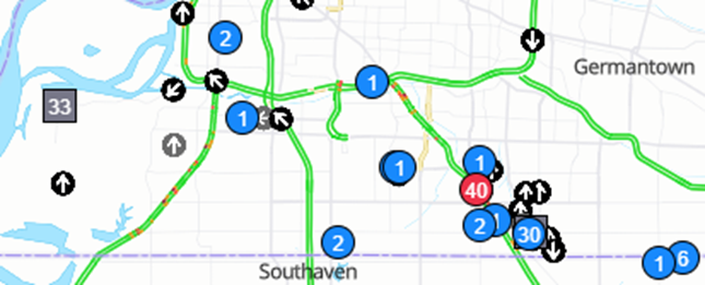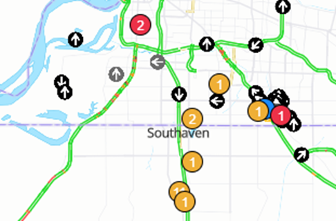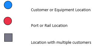 Based on filter settings, the map will display the applicable geographic area in which the moves & drivers are active. (See example below)