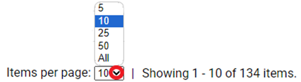 The default viewable items per page is ten (10). Left click on the down arrow below to change that setting.