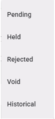 Users will have up to five (5) statuses to choose from under the “DocAudit” dropdown located at the top right of the screen upon launch of the portal. The default setting is “Rejected”. Left click on the dropdown, then left click on the desired status name. (As below)