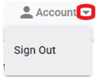 To sign out of the Portal, first left click on the dropdown arrow to the right of “Account” located in the top right corner of the page. Next, left click on “Sign Out”. (As below)