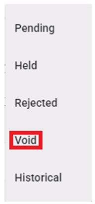 “Void” status will display those documents that have been voided in the DocAudit Portal. To view a particular Pro in “Void” status, left click on the line to open the document viewing and (if applicable) action window.