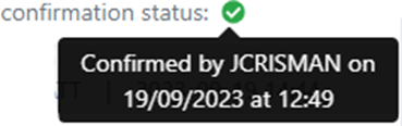 The explanation point will then turn GREEN. Hover over this symbol to view who confirmed the message & the time it was confirmed. (As below)