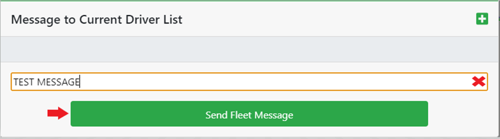 Left click on the green “Send Fleet Message” button located above the driver list. (As below)