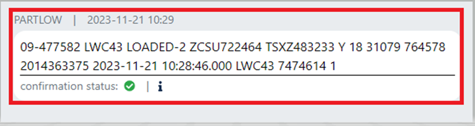 When a driver sends in a loaded message for an export container, it will look like the below: