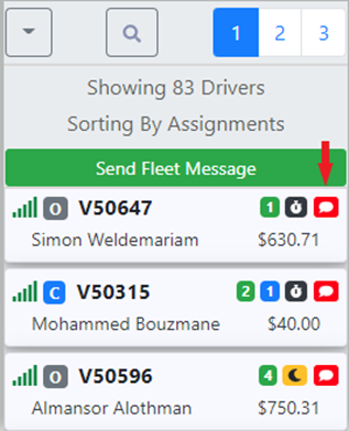 HINT: New driver messages (red bubble) should be prioritized. The driver at the top of the list of new messages indicates the oldest message.